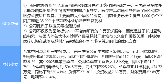 该股为医疗耗材供应链SPD,医药商业,猴痘概念概念热股。