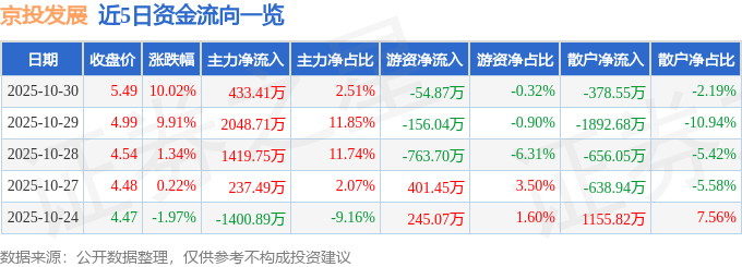 10月30日的资金流向数据方面,主力资金净流入433.41万元,占总成交额2.51%,游资资金净流出54.87万元,占总成交额0.32%,散户资金净流出378.55万元,占总成交额2.19%。