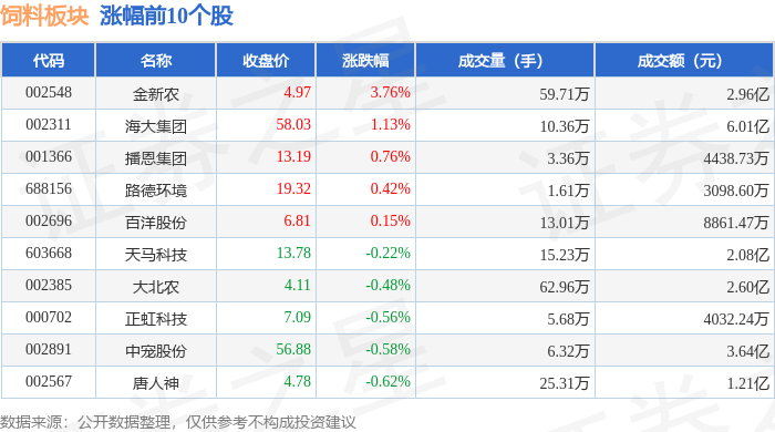 证券之星消息,10月30日饲料板块较上一交易日下跌0.27%,天康生物领跌。当日上证指数报收于3986.9,下跌0.73%。深证成指报收于13532.13,下跌1.16%。饲料板块个股涨跌见下表: