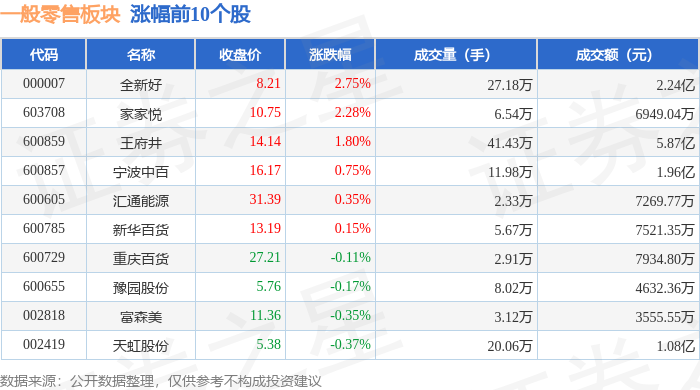 从资金流向上来看,当日一般零售板块主力资金净流出6.98亿元,游资资金净流入2064.81万元,散户资金净流入6.77亿元。一般零售板块个股资金流向见下表:
