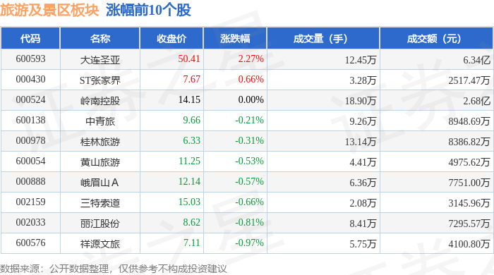 从资金流向上来看,当日旅游及景区板块主力资金净流出3.41亿元,游资资金净流入1082.85万元,散户资金净流入3.3亿元。旅游及景区板块个股资金流向见下表: