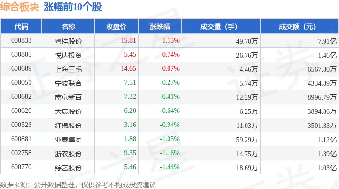 从资金流向上来看,当日综合板块主力资金净流出1.74亿元,游资资金净流入3641.99万元,散户资金净流入1.37亿元。综合板块个股资金流向见下表: