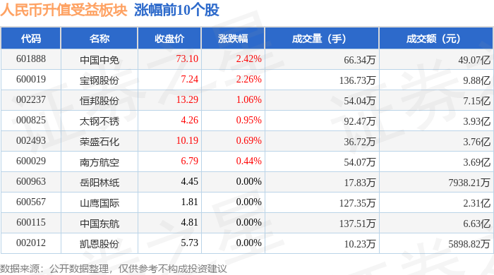 从资金流向上来看,当日人民币升值受益板块主力资金净流出6.61亿元,游资资金净流入153.74万元,散户资金净流入6.59亿元。人民币升值受益板块个股资金流向见下表: