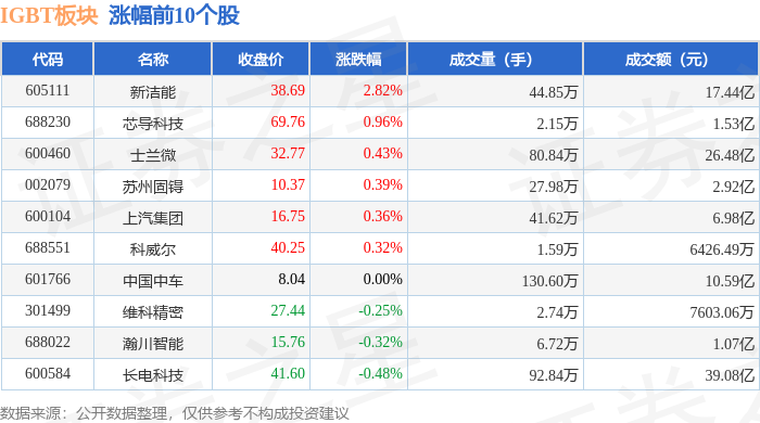 从资金流向上来看,当日IGBT板块主力资金净流出41.95亿元,游资资金净流入18.47亿元,散户资金净流入23.49亿元。IGBT板块个股资金流向见下表: