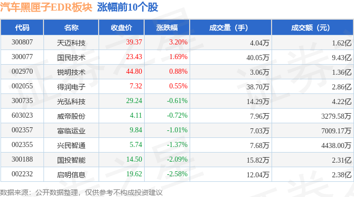 从资金流向上来看,当日汽车黑匣子EDR板块主力资金净流出8.08亿元,游资资金净流入5.33亿元,散户资金净流入2.75亿元。汽车黑匣子EDR板块个股资金流向见下表: