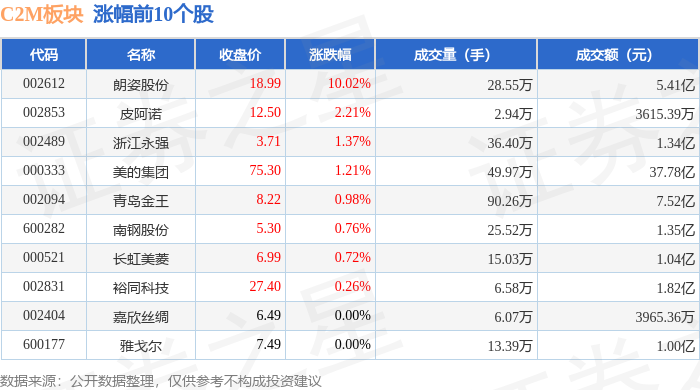 证券之星消息,10月30日C2M板块较上一交易日上涨0.41%,朗姿股份领涨。当日上证指数报收于3986.9,下跌0.73%。深证成指报收于13532.13,下跌1.16%。C2M板块个股涨跌见下表: