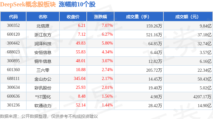 从资金流向上来看,当日DeepSeek概念股板块主力资金净流出26.87亿元,游资资金净流入5.53亿元,散户资金净流入21.34亿元。DeepSeek概念股板块个股资金流向见下表: