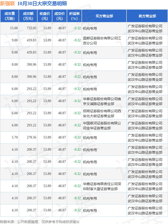证券之星消息,10月30日新强联发生大宗交易,交易数据如下: