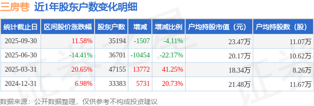 从股价来看,2025年6月30日至2025年9月30日,三房巷区间涨幅为11.58%,在此期间股东户数减少1507.0户,减幅为4.11%。