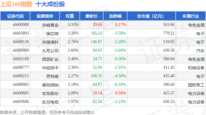 证券之星消息,10月30日,上证100(000132)指数报收于5996.21点,跌1.38%,成交542.31亿元,换手率2.02%。当日该指数成份股中,上涨的有25家,赛腾股份以6.87%的涨幅领涨,下跌的有74家,三星医疗以10.01%的跌幅领跌。