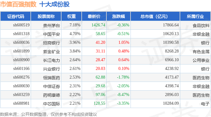 证券之星消息,10月30日,市值百强(000155)指数报收于3338.47点,跌0.65%,成交3106.35亿元,换手率0.53%。当日该指数成份股中,上涨的有39家,华友钴业以4.28%的涨幅领涨,下跌的有58家,药明康德以8.47%的跌幅领跌。