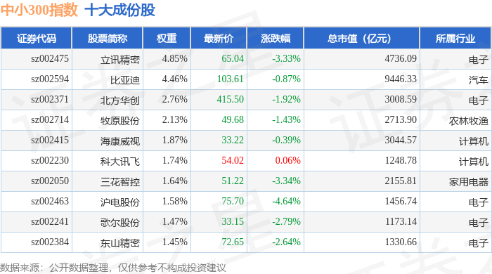 资金流向方面,中小300(399008)指数成份股当日主力资金净流出合计133.46亿元,游资资金净流入合计20.38亿元,散户资金净流入合计113.08亿元。成份股资金流向详情见下表: