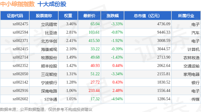 资金流向方面,中小综指(399101)指数成份股当日主力资金净流出合计205.2亿元,游资资金净流入合计11.5亿元,散户资金净流入合计193.71亿元。成份股资金流向详情见下表: