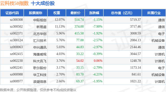 证券之星消息,10月30日,云科技50(399279)指数报收于4890.17点,跌2.61%,成交1690.31亿元,换手率3.48%。当日该指数成份股中,上涨的有8家,信维通信以7.41%的涨幅领涨,下跌的有41家,新易盛以7.9%的跌幅领跌。