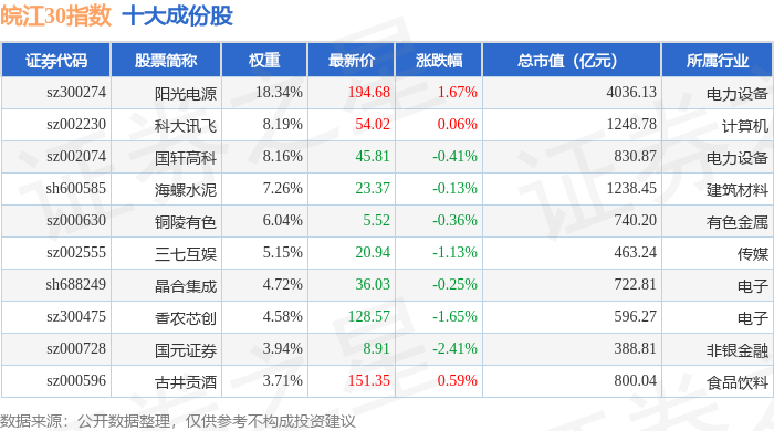 皖江30(399350)指数十大成份股详情如下: