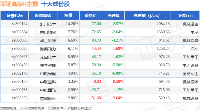 深证高装R(470037)指数十大成份股详情如下: