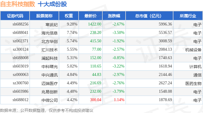 证券之星消息,10月30日,自主科技(980033)指数报收于9652.62点,跌2.15%,成交1221.58亿元,换手率2.31%。当日该指数成份股中,上涨的有8家,金山办公以2.17%的涨幅领涨,下跌的有42家,晶晨股份以9.71%的跌幅领跌。