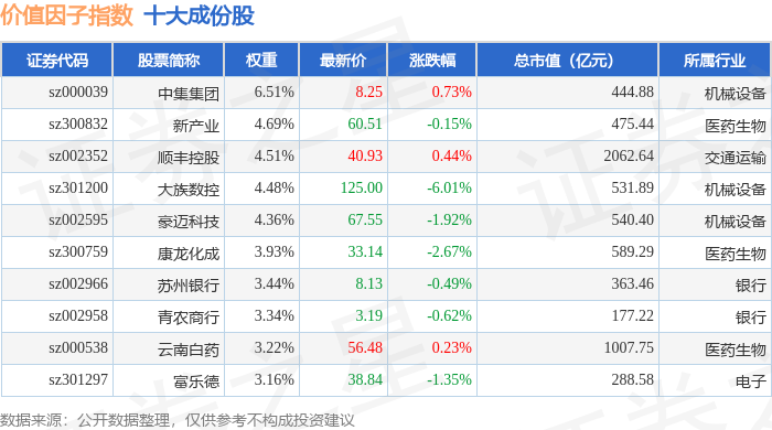 证券之星消息,10月30日,价值因子(980056)指数报收于2589.49点,跌0.86%,成交562.24亿元,换手率1.58%。当日该指数成份股中,上涨的有14家,中钨高新以5.05%的涨幅领涨,下跌的有36家,中航光电以6.88%的跌幅领跌。