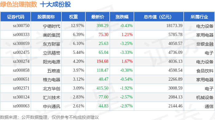 绿色治理(980058)指数十大成份股详情如下: