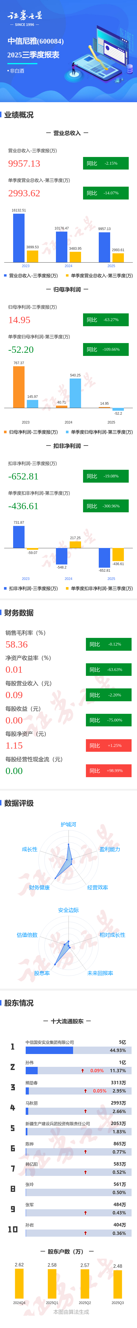 证券之星消息,中信尼雅2025年三季报显示,前三季度公司主营收入9957.13万元,同比下降2.16%;归母净利润14.95万元,同比下降63.28%;扣非净利润-652.81万元,同比下降19.08%;其中2025年第三季度,公司单季度主营收入2993.62万元,同比下降14.07%;单季度归母净利润-52.2万元,同比下降109.66%;单季度扣非净利润-436.61万元,同比下降300.97%;负债率12.42%,投资收益275.51万元,财务费用110.48万元,毛利率58.36%。