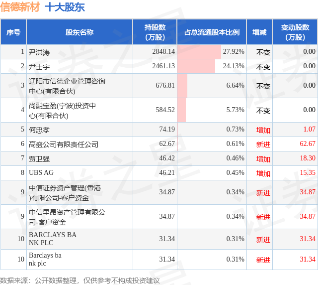 根据信德新材2025年三季报公布的十大股东详情如下: