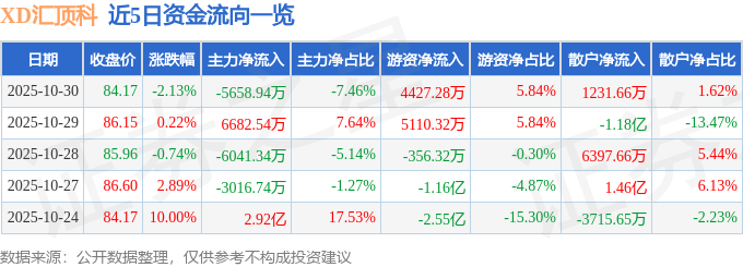 10月30日的资金流向数据方面,主力资金净流出5658.94万元,占总成交额7.46%,游资资金净流入4427.28万元,占总成交额5.84%,散户资金净流入1231.66万元,占总成交额1.62%。