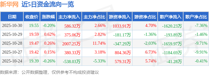 证券之星消息,截至2025年10月30日收盘,新华网(603888)报收于19.55元,下跌0.2%,换手率1.66%,成交量11.18万手,成交额2.2亿元。