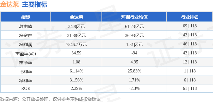 该股主要指标及行业内排名如下: