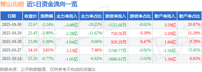 10月30日的资金流向数据方面,主力资金净流出3.48亿元,占总成交额20.22%,游资资金净流出1125.68万元,占总成交额0.65%,散户资金净流入3.59亿元,占总成交额20.87%。