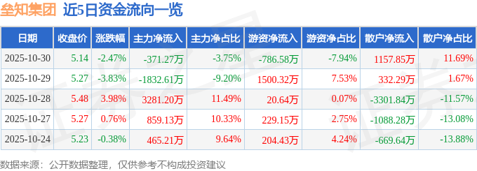 证券之星消息,截至2025年10月30日收盘,垒知集团(002398)报收于5.14元,下跌2.47%,换手率3.35%,成交量19.09万手,成交额9901.69万元。