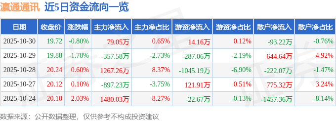 10月30日的资金流向数据方面,主力资金净流入79.05万元,占总成交额0.65%,游资资金净流入14.16万元,占总成交额0.12%,散户资金净流出93.22万元,占总成交额0.76%。
