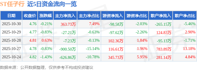 10月30日的资金流向数据方面,主力资金净流入363.73万元,占总成交额7.49%,游资资金净流出98.58万元,占总成交额2.03%,散户资金净流出265.15万元,占总成交额5.46%。