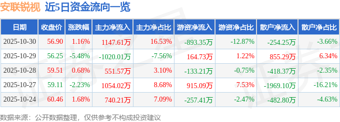 10月30日的资金流向数据方面,主力资金净流入1147.61万元,占总成交额16.53%,游资资金净流出893.35万元,占总成交额12.87%,散户资金净流出254.25万元,占总成交额3.66%。