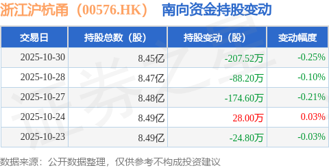 证券之星消息,10月30日南向资金减持207.52万股浙江沪杭甬(00576.HK)。近5个交易日中,获南向资金减持的有4天,累计净减持467.12万股。近20个交易日中,获南向资金减持的有16天,累计净减持1823.2万股。截至目前,南向资金持有浙江沪杭甬(00576.HK)8.45亿股,占公司已发行普通股的41.74%。