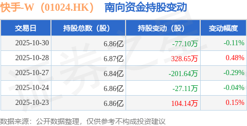 证券之星消息,10月30日南向资金减持77.1万股快手-W(01024.HK)。近5个交易日中,获南向资金增持的有2天,累计净增持126.94万股。近20个交易日中,获南向资金增持的有12天,累计净增持3622.46万股。截至目前,南向资金持有快手-W(01024.HK)6.86亿股,占公司已发行普通股的15.86%。