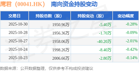 证券之星消息,10月30日南向资金减持5.4万股鹰君(00041.HK)。近5个交易日中,获南向资金减持的有5天,累计净减持58.5万股。近20个交易日中,获南向资金减持的有14天,累计净减持59.4万股。截至目前,南向资金持有鹰君(00041.HK)1950.96万股,占公司已发行普通股的2.6%。