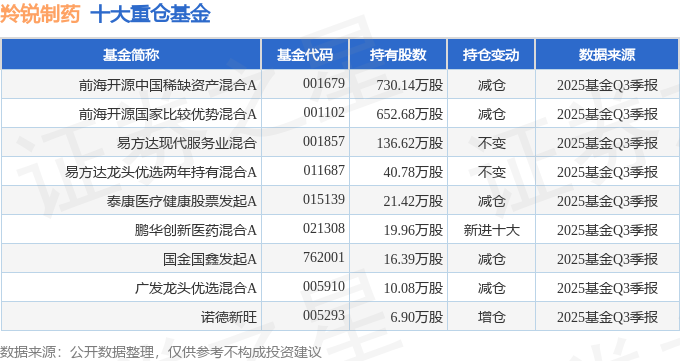 持有羚锐制药最多的基金为前海开源中国稀缺资产混合A,目前规模为22.43亿元,最新净值1.723(10月29日),较上一交易日上涨2.32%,近一年上涨9.47%。该基金现任基金经理为曲扬。