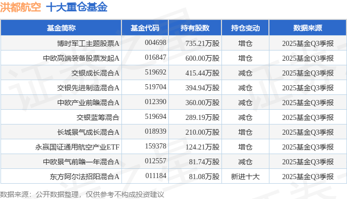 持有洪都航空最多的基金为博时军工主题股票A,目前规模为24.48亿元,最新净值1.986(10月29日),较上一交易日上涨0.15%,近一年上涨44.23%。该基金现任基金经理为曾鹏。