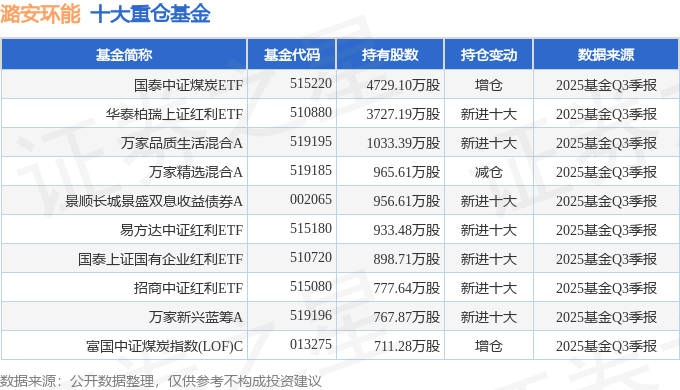 持有潞安环能最多的基金为国泰中证煤炭ETF,目前规模为114.13亿元,最新净值1.192(10月30日),较上一交易日下跌0.68%,近一年上涨4.57%。该基金现任基金经理为吴中昊。