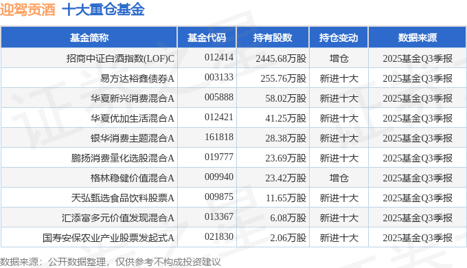 持有迎驾贡酒最多的基金为招商中证白酒指数(LOF)C,目前规模为150.16亿元,最新净值0.767(10月30日),较上一交易日上涨0.29%,近一年下跌7.96%。该基金现任基金经理为侯昊。