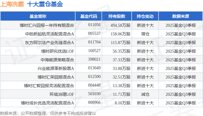 持有上海洗霸最多的基金为博时汇兴回报一年持有期混合,目前规模为58.18亿元,最新净值1.0533(10月29日),较上一交易日上涨1.23%,近一年上涨52.21%。该基金现任基金经理为吴渭。