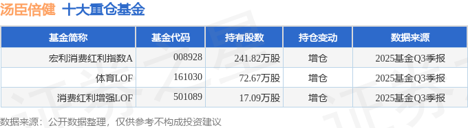 持有汤臣倍健最多的基金为宏利消费红利指数A,目前规模为6.83亿元,最新净值1.6099(10月29日),较上一交易日上涨0.64%,近一年上涨7.28%。该基金现任基金经理为李婷婷。