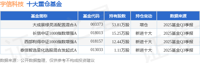 持有宇信科技最多的基金为大成景禄灵活配置混合A,目前规模为0.55亿元,最新净值1.9408(10月30日),较上一交易日下跌1.4%,近一年上涨46.01%。该基金现任基金经理为李煜。
