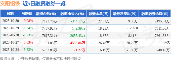 证券之星消息,截至2025年10月30日收盘,安阳钢铁(600569)报收于2.62元,上涨10.08%,涨停,换手率4.9%,成交量140.87万手,成交额3.57亿元。