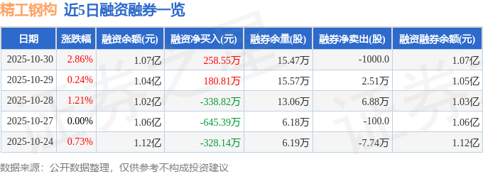 证券之星消息,截至2025年10月30日收盘,精工钢构(600496)报收于4.31元,上涨2.86%,换手率4.87%,成交量96.9万手,成交额4.2亿元。