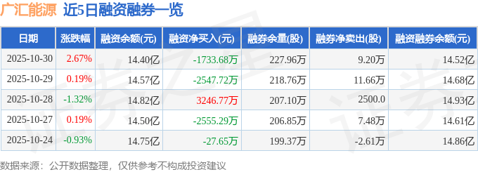 广汇能源融资融券信息显示,融资方面,当日融资买入1.09亿元,融资偿还1.26亿元,融资净偿还1733.68万元。融券方面,融券卖出9.66万股,融券偿还4600.0股,融券余量227.96万股,融券余额1228.7万元。融资融券余额14.52亿元。