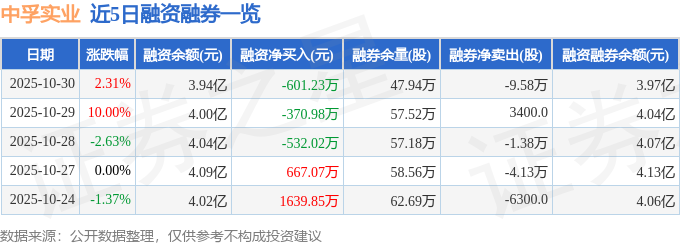 中孚实业融资融券信息显示,融资方面,当日融资买入1.18亿元,融资偿还1.24亿元,融资净偿还601.23万元。融券方面,融券卖出6.99万股,融券偿还16.57万股,融券余量47.94万股,融券余额339.87万元。融资融券余额3.97亿元。