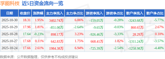 证券之星消息,截至2025年10月30日收盘,孚能科技(688567)报收于18.31元,上涨1.95%,换手率2.51%,成交量30.73万手,成交额5.62亿元。