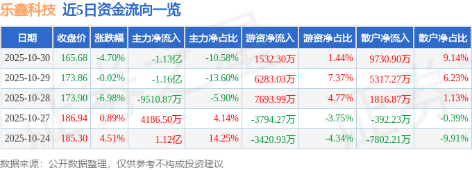 10月30日的资金流向数据方面,主力资金净流出1.13亿元,占总成交额10.58%,游资资金净流入1532.3万元,占总成交额1.44%,散户资金净流入9730.9万元,占总成交额9.14%。