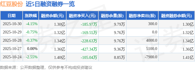 证券之星消息,截至2025年10月30日收盘,红豆股份(600400)报收于2.54元,下跌4.15%,换手率3.34%,成交量76.59万手,成交额1.97亿元。